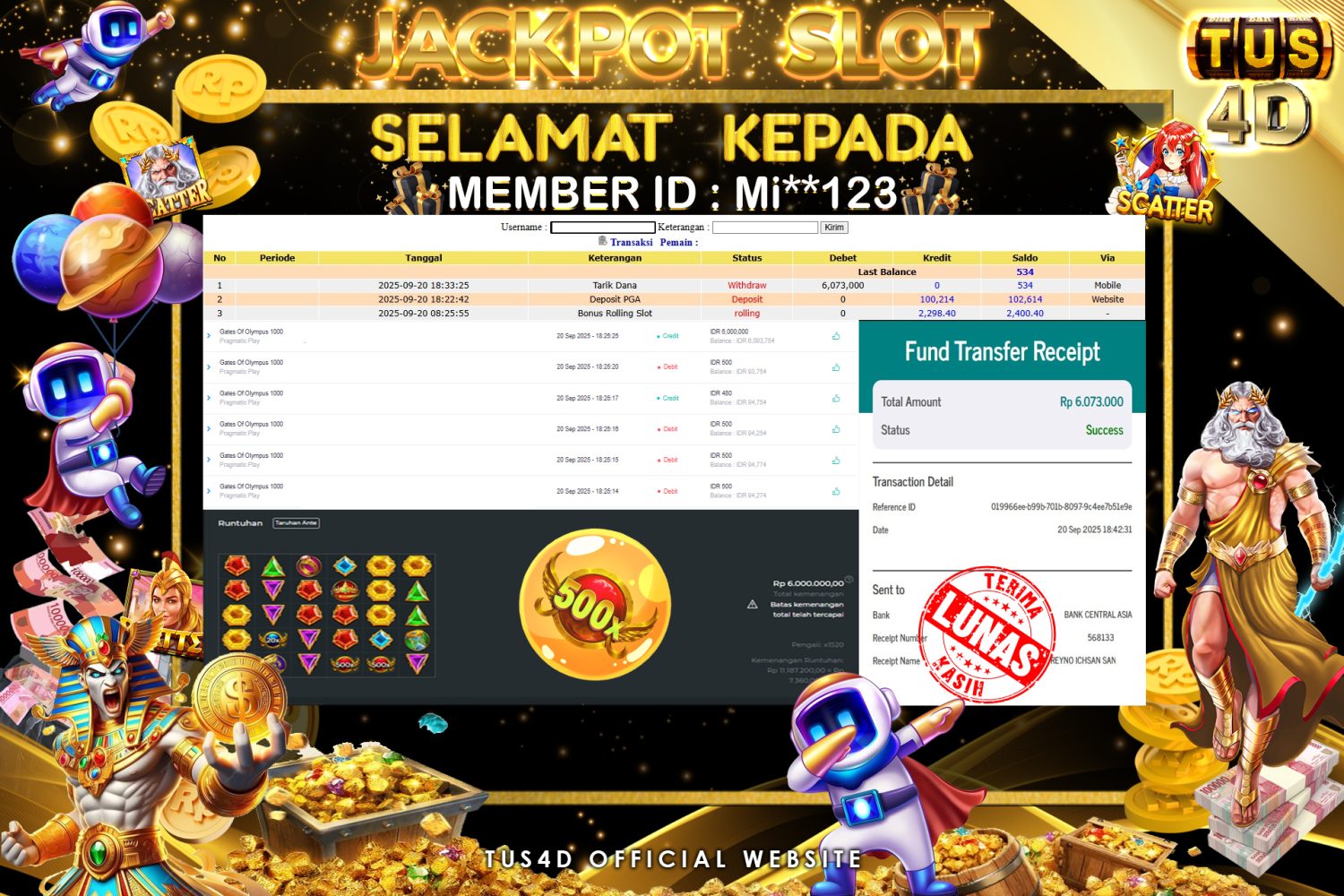 TUS4D JACKPOT SLOT Gates Of Olympus1000 Rp 6.073.000.,- LUNAS