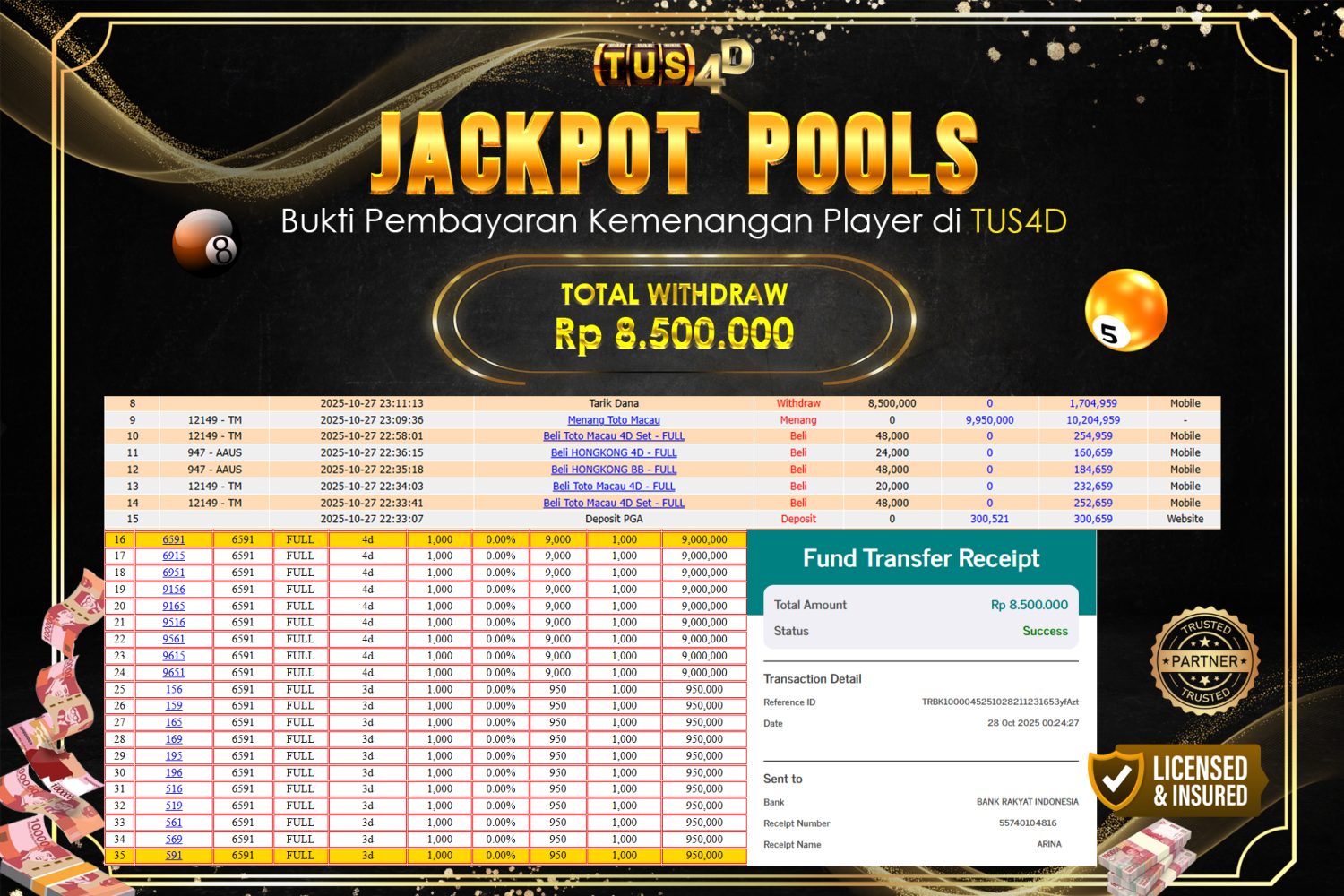 TUS4D JACKPOT TOTOMACAU PERIODE 5 Rp 8.500.000.,- LUNAS