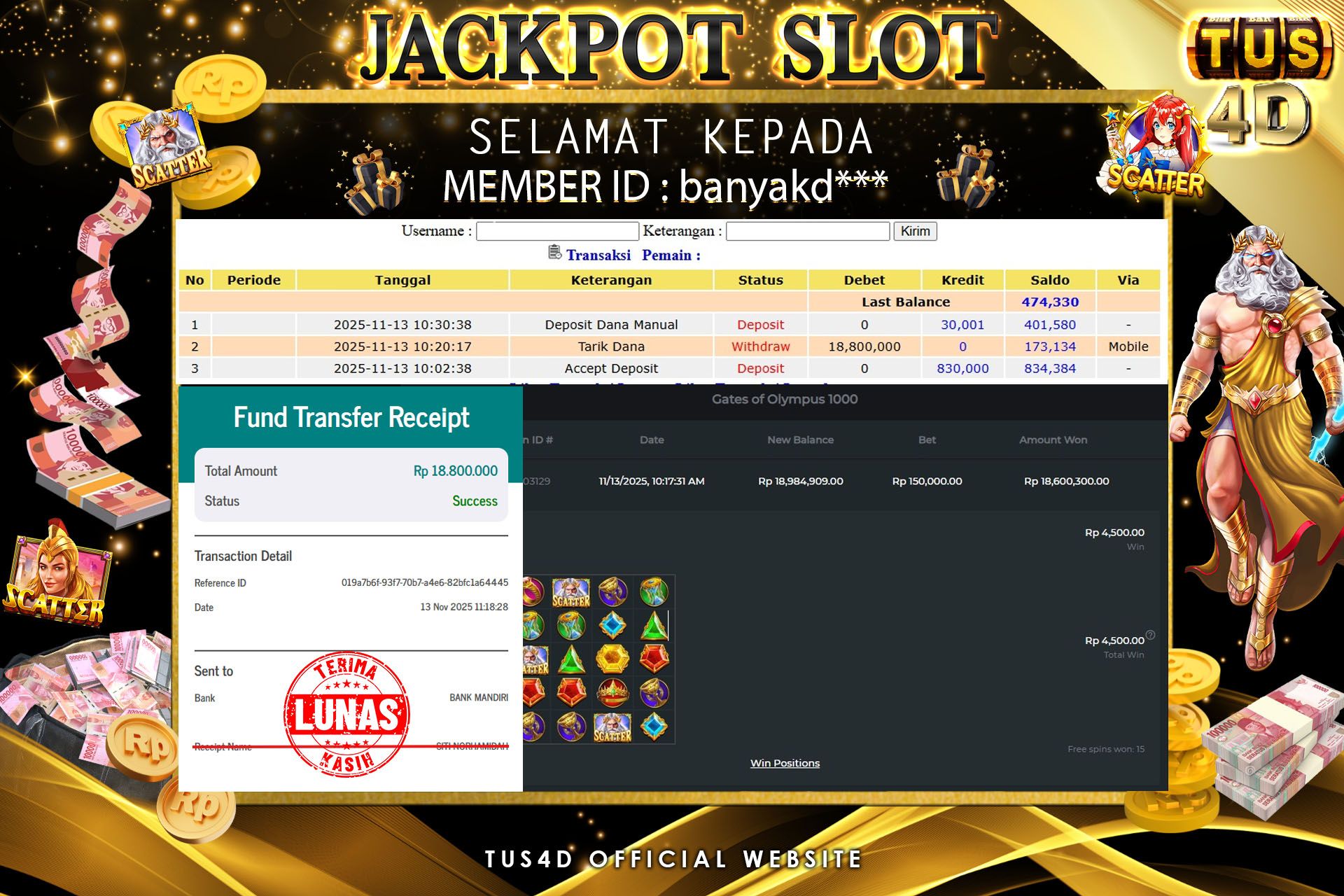 TUS4D JACKPOT SLOT Rp 18,800,00 – LUNAS