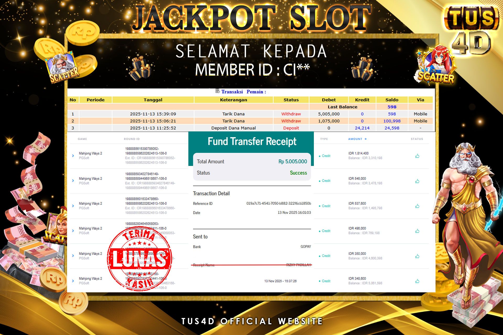 TUS4D JACKPOT SLOT Rp 5,005,000 – LUNAS