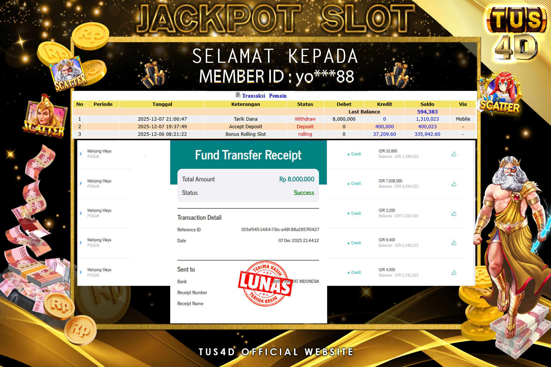 TUS4D JACKPOT SLOT Mahjong Ways Rp 8.000.000.,- LUNAS